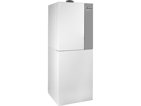 • Bodenstehender Gas-Brennwertkessel mit Trinkwassererwärmung über integriertem Speicher