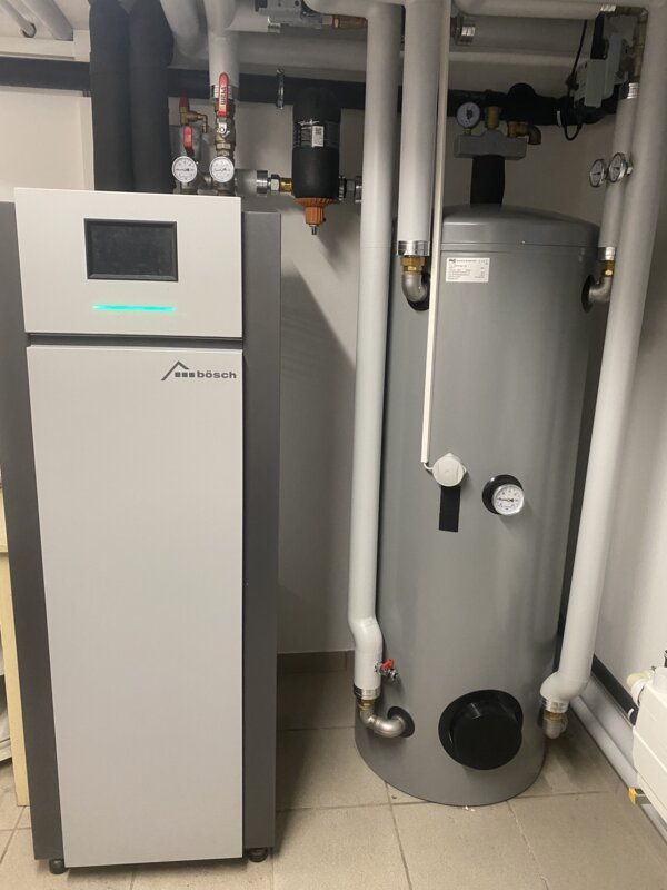 Zentraler Aspekt der Sanierung war die Umstellung der Heizungsanlage von Öl auf eine nachhaltige Wärmepumpen-Heizung. Sie versorgt sowohl die Heizkörper als auch die Fußbodenheizung mit Wärme. Die Wahl der Besitzer fiel auf die modulierende Sole/Wasser-Wärmepumpe KLIMT von bösch. Sie nutzt die unerschöpfliche Energiequelle des Erdreichs für Heizung und Warmwasser und versorgt das 200 m² Gebäude mit umweltfreundlicher Heizungswärme. Überschüssige Energie wird im Puffer bzw. dem Warmwasserboiler zwischengespeichert.